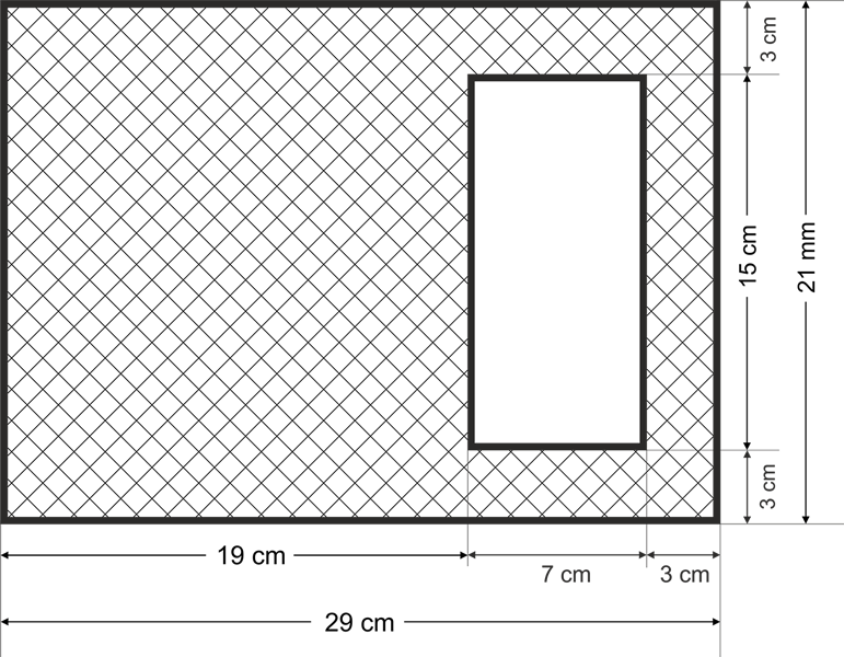 Carton mucava predecupat în interior, dreptunghi portret 15 x 7 cm, pentru album 20x60 cm deschis, grosime mucava 2,5 mm, dimensiune 21x29 cm, ambalaj 12 coli.
