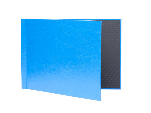 PHOTOClip-Book din piele ecologică pentru fotografii A4, orientare landscape, dimensiune copertă 313 x 222 mm, grosime copertă 18 mm, dimensiune hârtie 210 x 297 mm, culoare albastră.