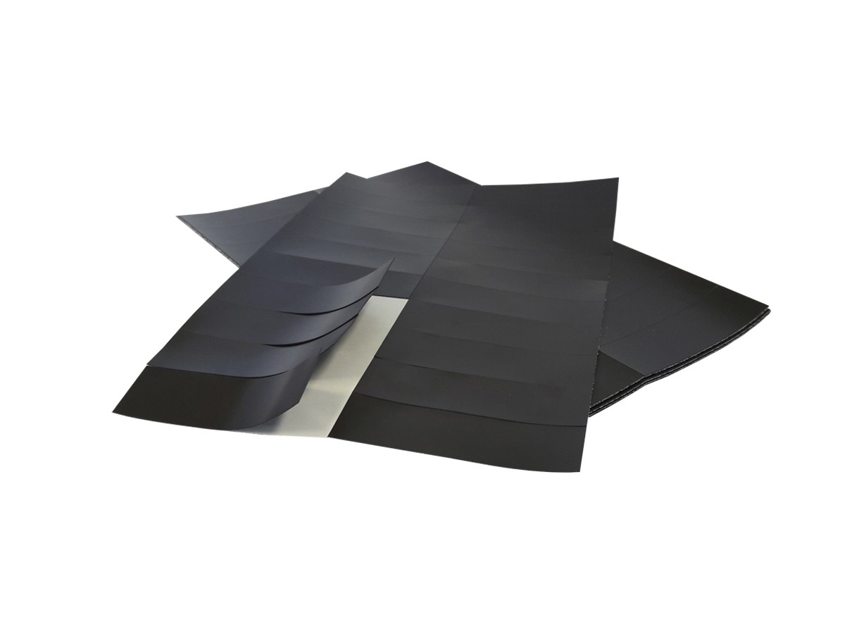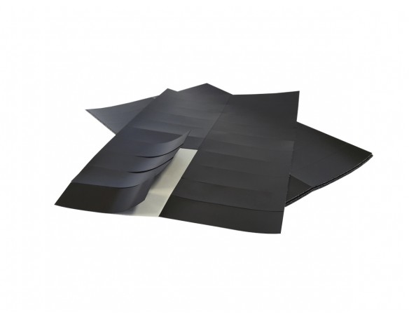 Pastile magnetice adezive, grosime folie magnetică 0,3 mm, grosime cu adeziv inclus 0,4 mm, dimensiune coală 200 x 300 mm, dimensiune pastilă 30 x 100 mm, număr de pastile pe coală 20, forţa magnetică ≧ 14 g/cm2, adeziv pe bază de apă.