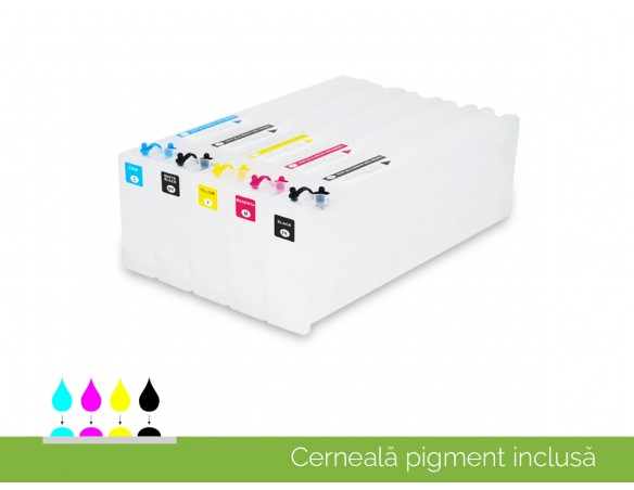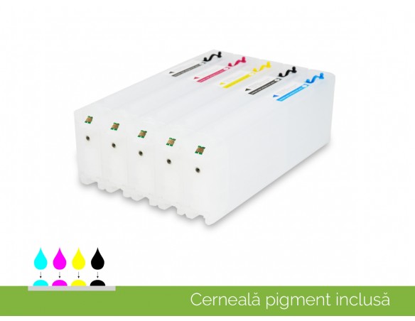 Set 5 cartuşe refill cu cip-uri single use, volum cartuş 700 ml, compatibil cu Epson SureColor SC-T5000, SC-T5200, SC-T7000 şi SC-T7200, cod cip-uri T6941-T6945 şi 5 x 700 ml cerneală pigment ULTRAPixel-HighGloss.